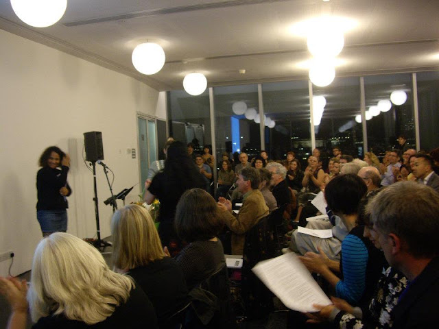Last Saturday was the launch of the second Poetry from Art at Tate Modern pamphlet anthology. 21 poets who attended my six-week summer course read their poems: one from the anthology and one other written on the course, or on previous courses this year. I was quite nervous – there were beginners as well as advanced writers, and a few had never read before – but I needn't have worried. They all did well and the capacity audience was most appreciative. I reckon there were about 140 in the audience, and a great atmosphere. The last reader, Karen McCarthy Woolf, gave a vote of thanks, then Bea Colley popped out with an enormous bouquet!